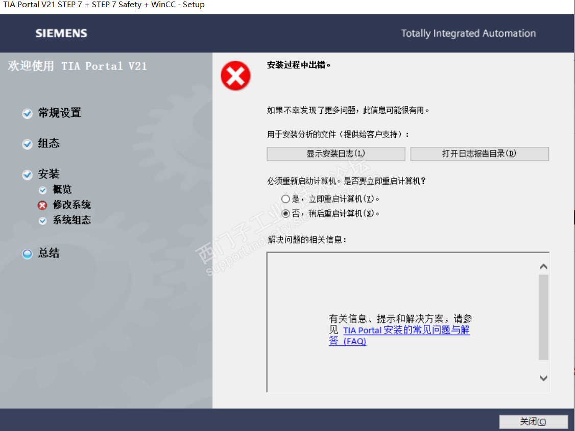 我的系统是windows 10专业版 版本22H2 以前安装博图V16正常的 最近安装V21过程中 出错(修改系统)我确定是没有修改过.