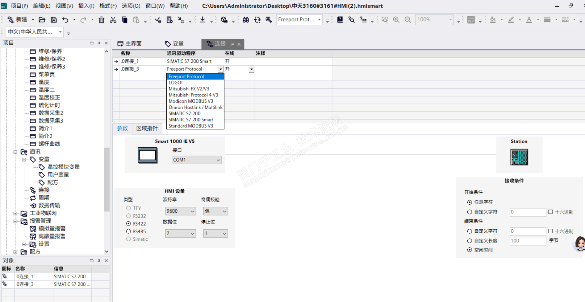 触摸屏为SMART 1000 IE V5 与麦卡米特温控器怎么连接通讯,温控器有TCP ,Modbus 便是触摸屏没有选择的选项,请问谁知道?谢谢