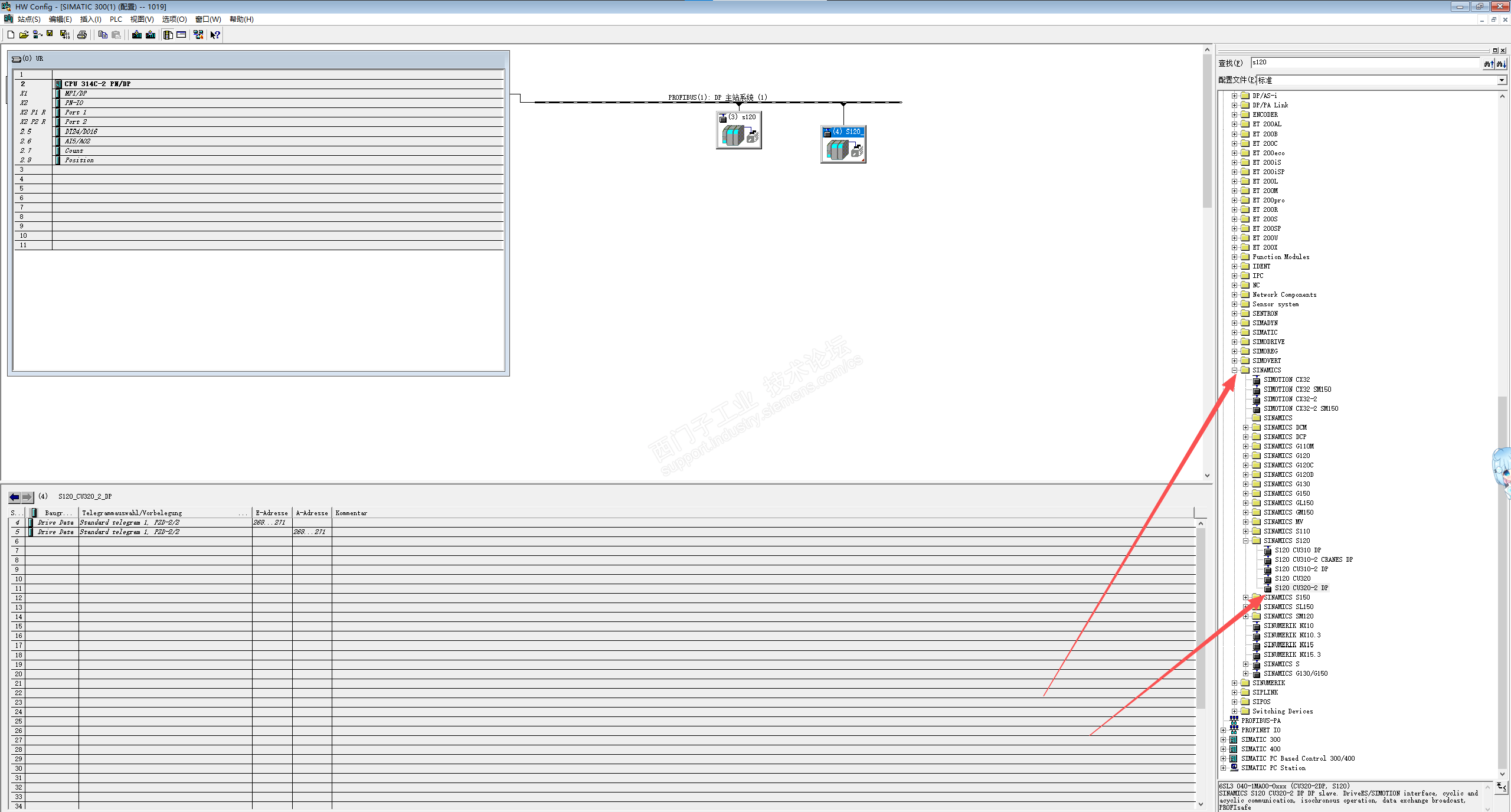 1、通过SINAMICS-SINAMICS-s120直接选择从站,不需要安装gsd;