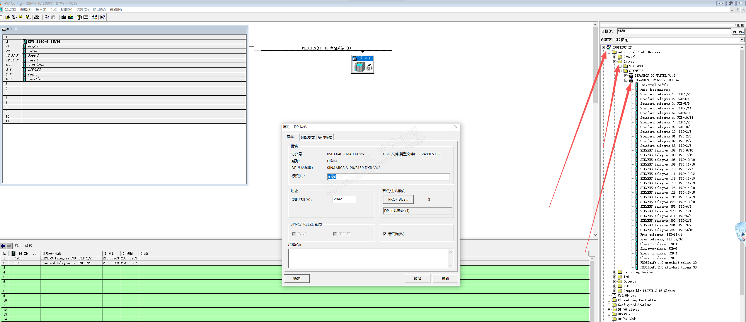 2、或者自己安装gsd文件,然后从profibus-driver-sinamics-s120选择从站;