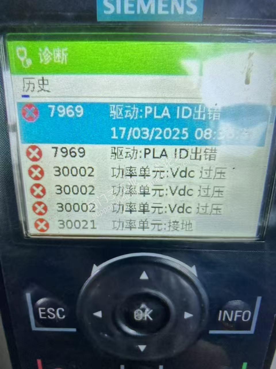 (截图的F30002历史故障不用管是线路其他故障已解决)。电机是永磁同步电机,反电势EMF也计算输入过,电机额定频率11HZ,0-10HZ之间运行基本稳定,超过10HZ就报警,用的矢量不带编码器p1300=20,用静态优化能通过辨识,脱开电机负载做动态优化进行大概20s之后提示辨识失败,20s之前做电机滴动态辨识电机也不转,只有轻微的震动和叫声,现场有4台一摸一样的都是这情况