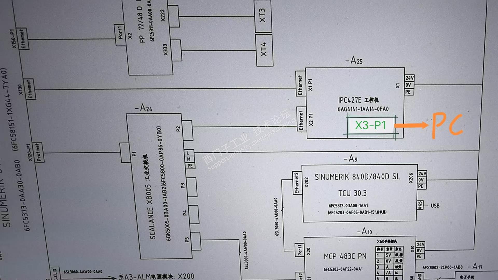 有没有碰到过840系统配NCU+IPC427E的设备,联电脑进行程序传输的,我的设备是NCU的X130接口连的是IPC427E的X1-P1 ,IPC427E的X2-P1连的是XB005-P2,IPC427E的X3-P1连的是电脑PC,这样的连法怎么实现和电脑连网进行