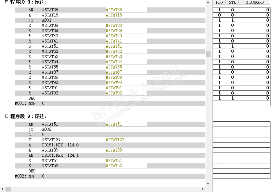 刚接触STL语言,请教下,监视STL程序,有些程序段不显示状态和值,是什么原因?如下图程序段8右侧有值,程序段9右侧没值。