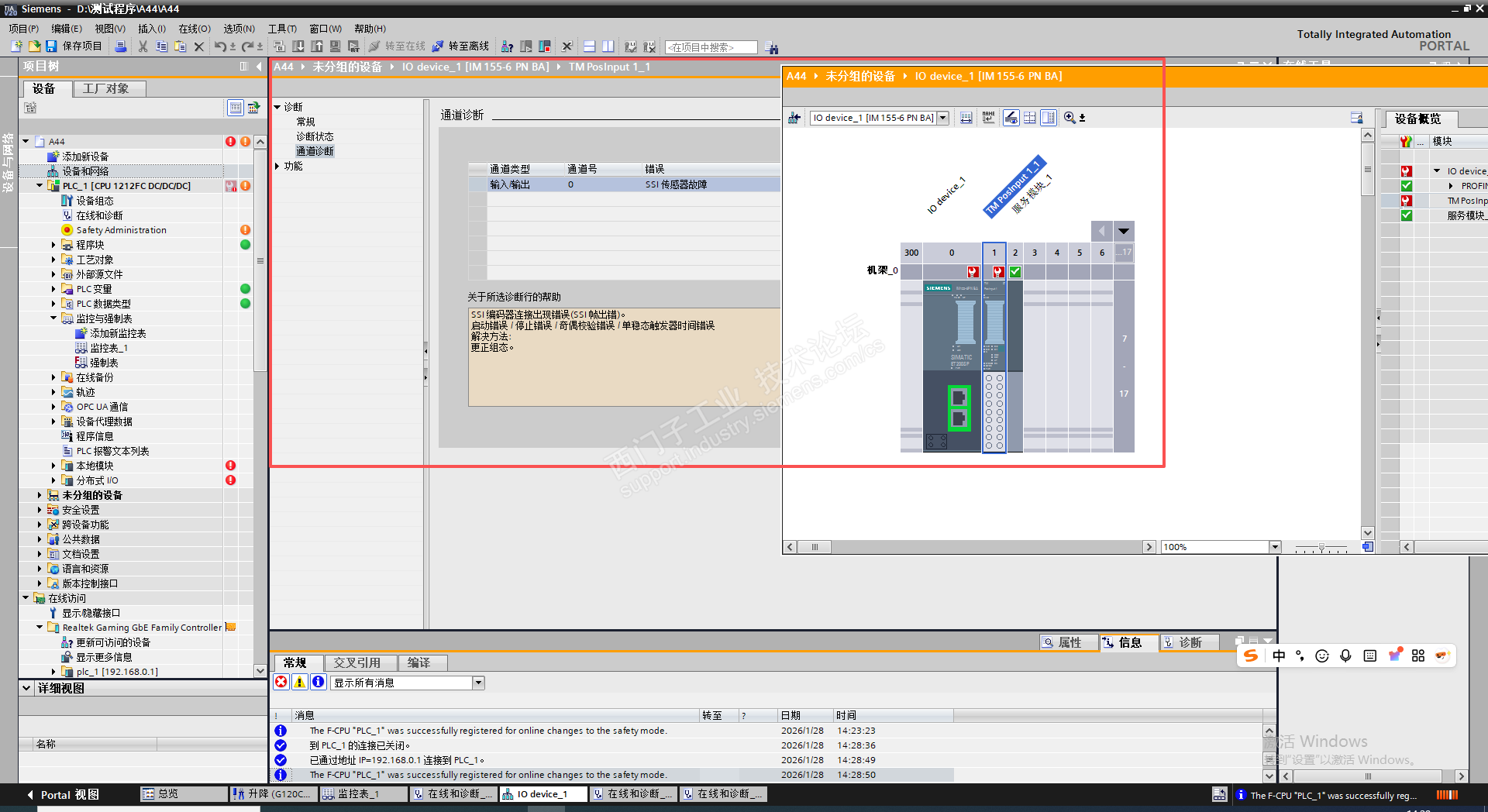 1200带ET200SP,扩展模块是 TM Posinput 1,6ES7138-6BA01-0BA0,用的SEW自带AK8Y的SSI信号的绝对值编码器,组后PLC报错?怎么回事?