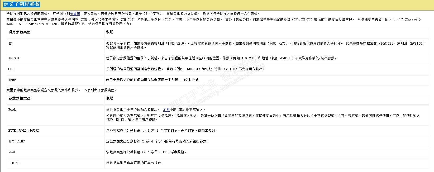 “子例程可能包含传递的参数。 在子例程的变量表中定义参数。参数必须具有符号名(最多 23 个字符)、变量类型和数据类型。 最多可与子例程之间传递十六个参数 ”。