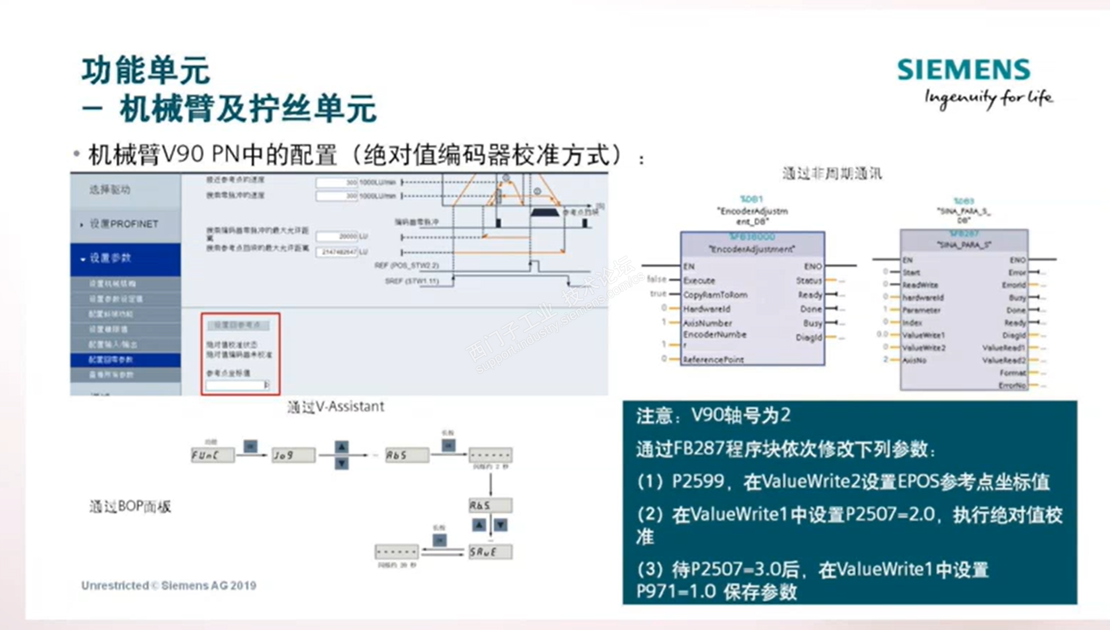 在机械臂拧丝视频中讲到绝对值编码器校准方式时有三种:V-assistant、bop面板、通过非周期通讯。