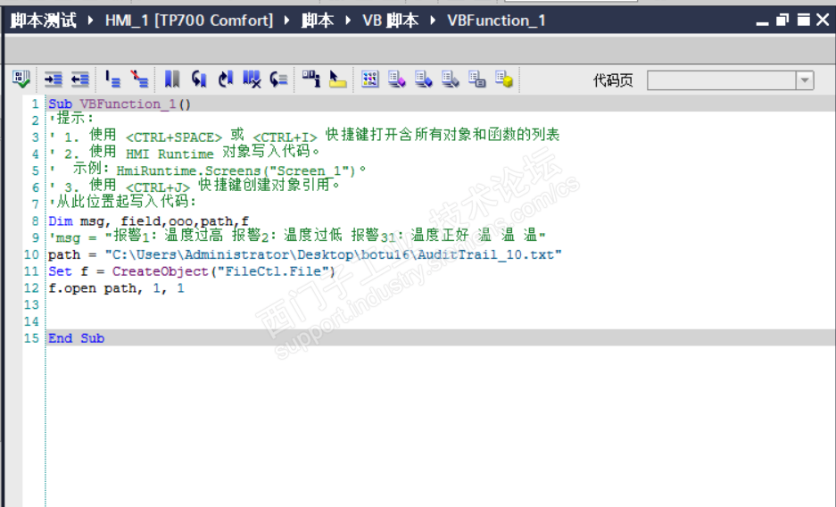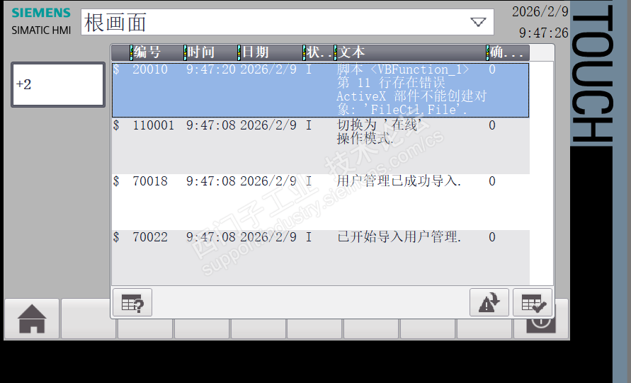如图所示:脚本运行的时候报警了,我是用的仿真软件运行的7寸精智面板,为什么不可以。