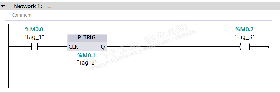 今天和一个同事在探讨编程问题的时候,他说其他品牌的PLC还有西门子200系列的PLC在做沿触发时都无需占用一个bool的空间。只有300/400/1200/1500才需要占用一个位,这样觉得很奇怪,下图是这些型号PLC的沿触发程序。其中变量“tag_2”似乎完全无用。我们只需要结果“Tag_3”就可以了。