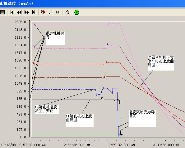 我觉的第一和第三个原因可能性大.大家看图帮我分析一下是什么原因引起的12架轧机速度下降.