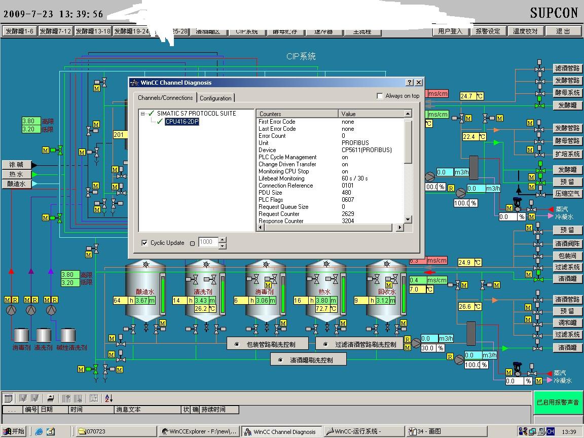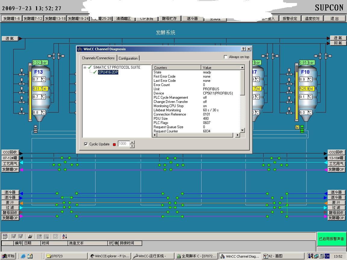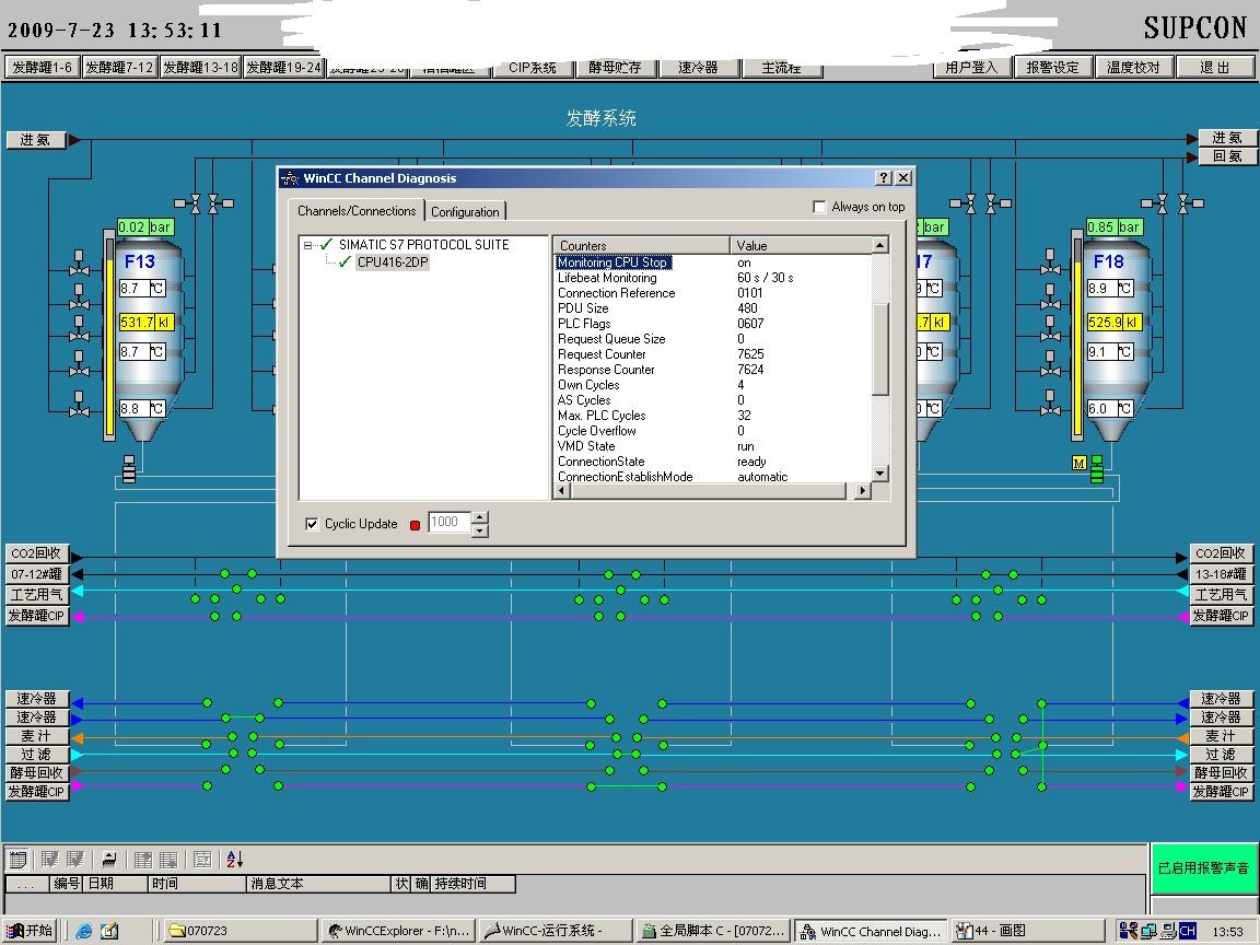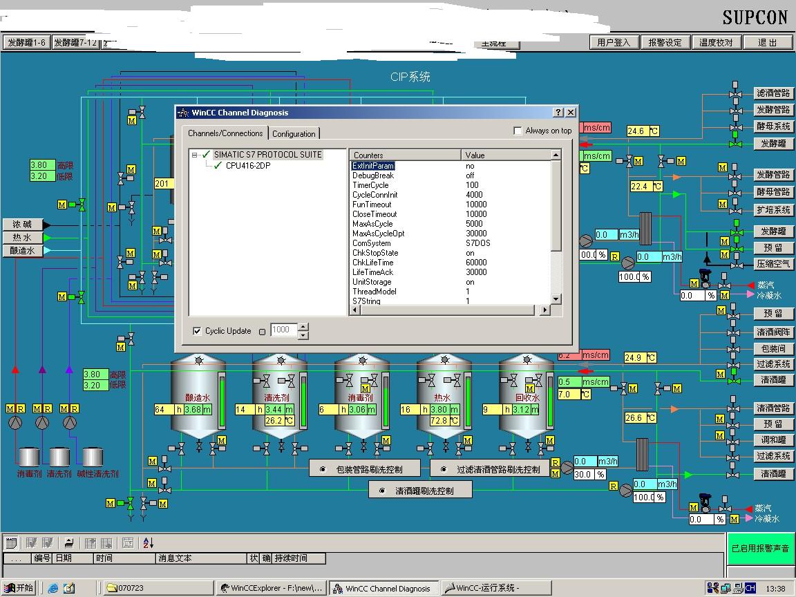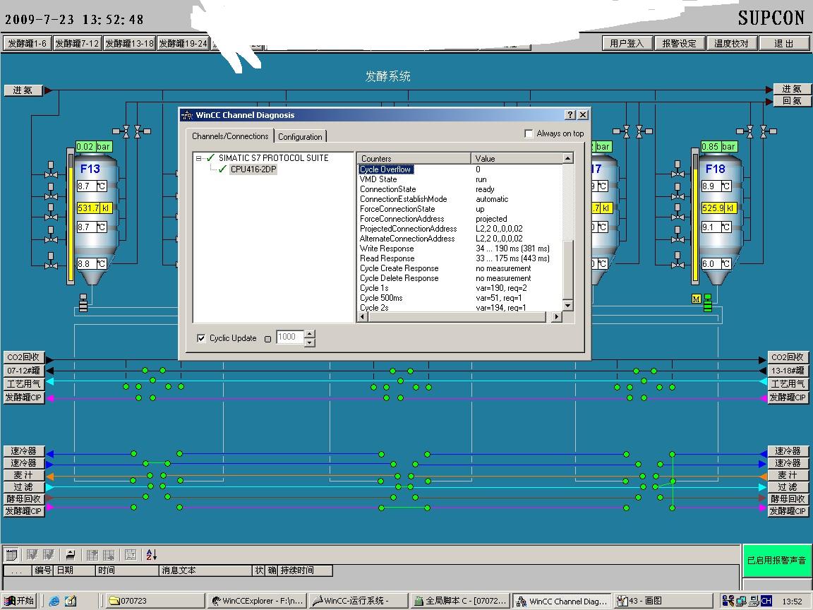 把所有的脚本改为WAIT时,WINCC的诊断画面:(此组画面未勾掉AS周期服务)