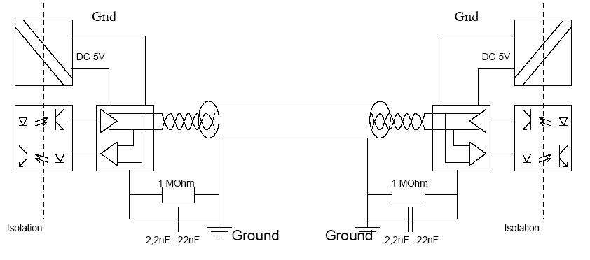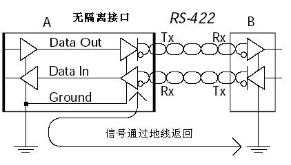 信号通过地线返回,非隔离的通信接口连接必须两端直连接地,它依赖良好的接地或浪涌保护器用于卸掉共模电流,如果烧口,可能直接烧毁控制器。