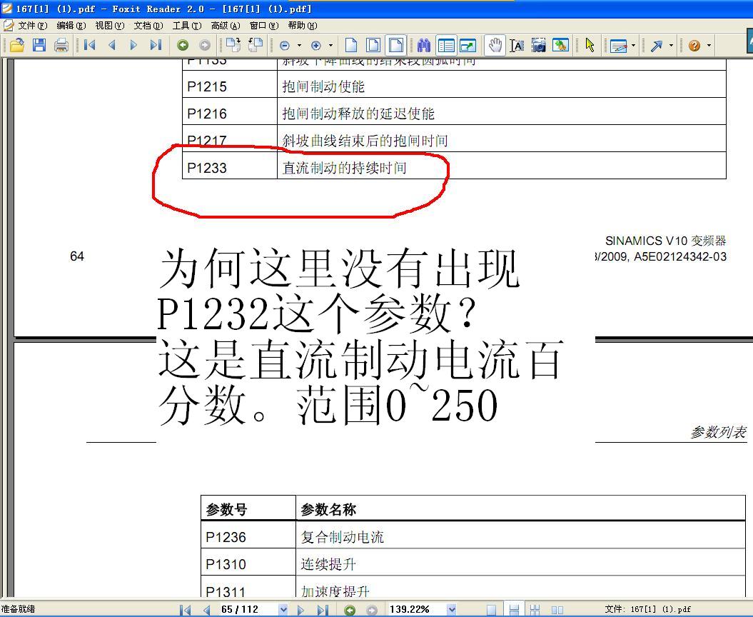 弄到直流刹车的时候遇到了问题。明明知道应该可以直流制动的了。可是就是弄不出来。查抱闸功能,查复合制动,查参数锁定,参数复位,查OFF1(2)(3)的定义,磁化电流,各个监控状态。不好意思,我第一次接触,所以时间比较长。反反复复确认重启了很多次了。还好因为一次自己操作的错误,输入P1233的时候输错成了 P1232 。因为已经很熟悉了,自己觉得不应该出错的了。对自己输入P1233毫不疑惑没有再核实。然后也很顺手地更改了该参数为10。