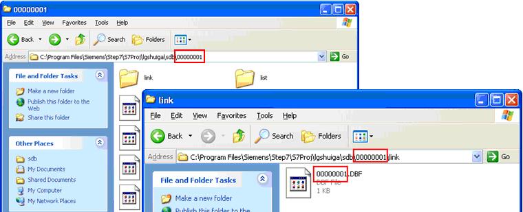 2、新建文件夹命名“link”,其他硬件组态编译正常的项目相应目录拷贝 .dbf文件到该项目中 C:\ProgramFiles\Siemens\Step7\S7Proj\lgshuiga\sdb\00000001\link,更改 .dbf文件名称