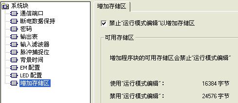 答:需要扩展程序存储区,设置系统块,禁止“运行模式编辑”一增加存储区。进行下载,并查看PLC>>信息。