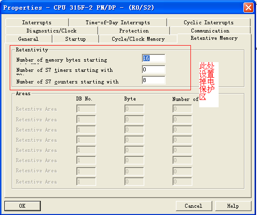 quote:以下是引用roger5206在2011-05-09 21:52:49的发言:quote:以下是引用划痕在2011-05-09 13:25:37的发言:在硬件组态中打开CPU的属性窗口,点击Retentive Memory属性,即下图进行掉电保护区的设置
