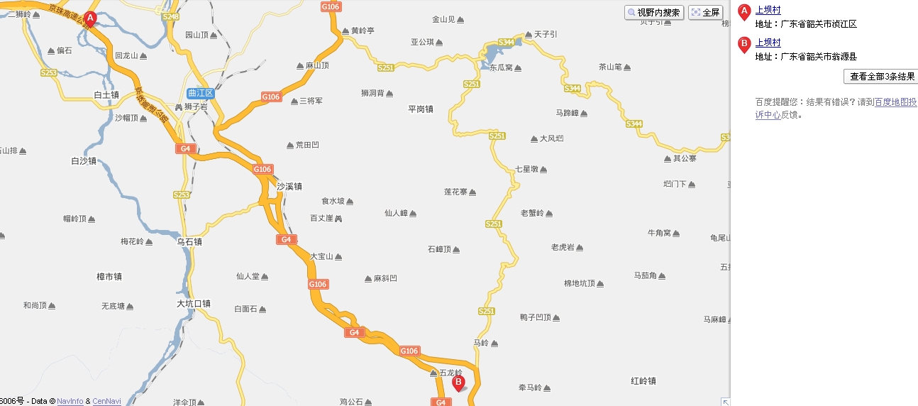 此处指的是韶关翁源县的上坝村,而不是浈江区的上坝村。即图中的B处。