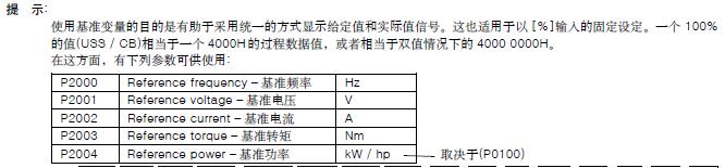你编程也不需要管实际值(包括程序中做PID调节;什么多台速比等等);一切都是用百分比来计算。你写的程序就可以重复利用啦。变频器、电机容量改变,也只需要重新读一下P2000-2004几个基准参考值就完成了。(注:当你做完电机调试,除电压参考=1000V之外,其它相关的参数自动改成电机额定值。)
