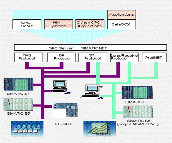 2、 Simatic NET是针对SIEMENS的大多数硬件产品 的OPC Server,如下图所示:
