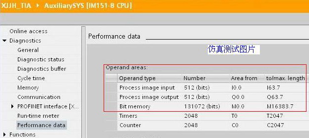 2、由于组态默认的设置是PIW=I0.0~I63.7;PQW=Q0.0~Q63.7,即设定值太小,所以在仿真测试时I/O映像区超出IW64或QW64就出错。