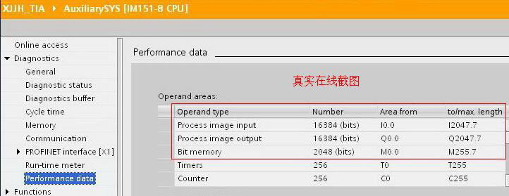 3、但这种现象如果是真实在线测试却正常了,因为真实在线测试显示的I/O映像区值不按组态中的设定值显示,而是按技术手册上书写的I/O映像区最大值显示。既然在STEP7 Professional V11+SP2版本中提供I/O映像区值组态设置,但真实在线使用时却不遵循组态设置。那么提供的I/O映像区值组态设置就是个摆设了!