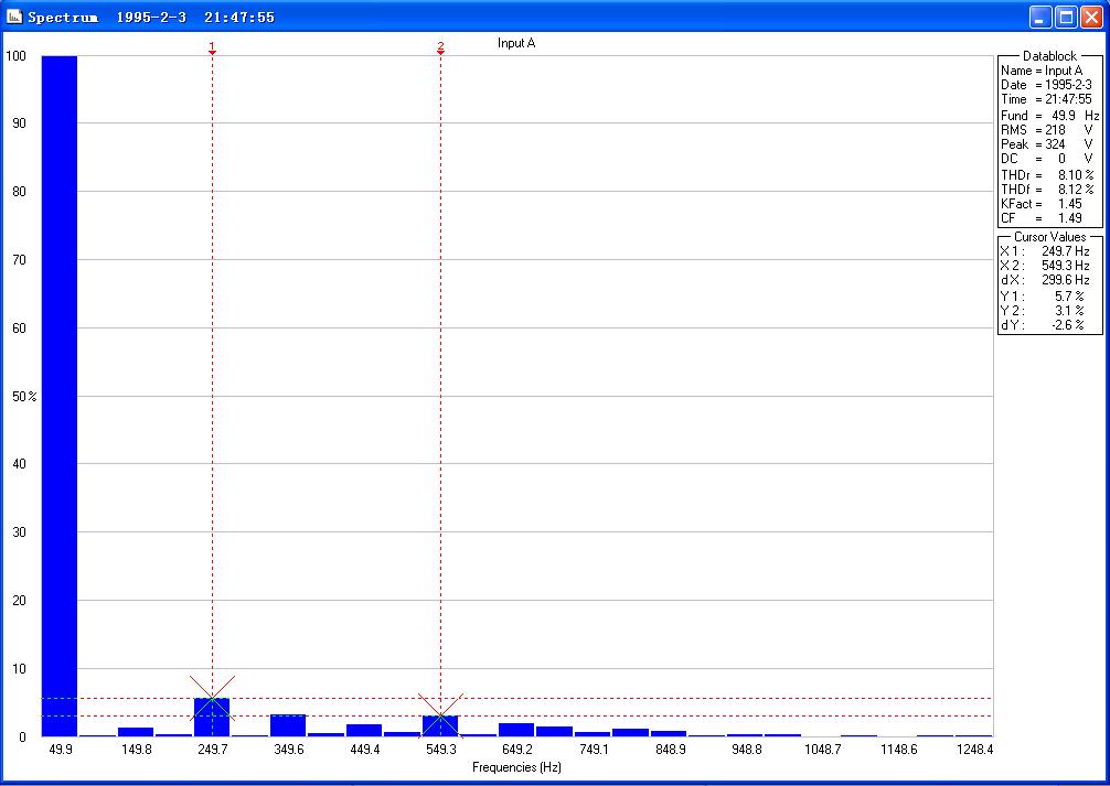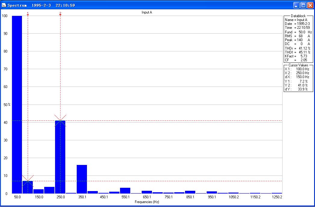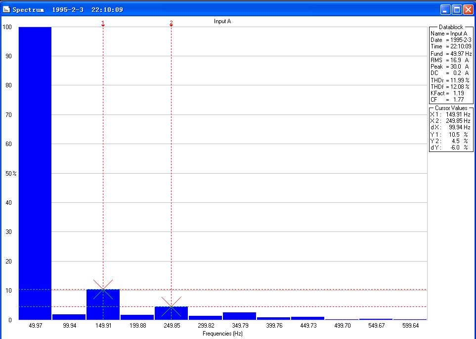 直流驱动器运行时的电流谐波分布