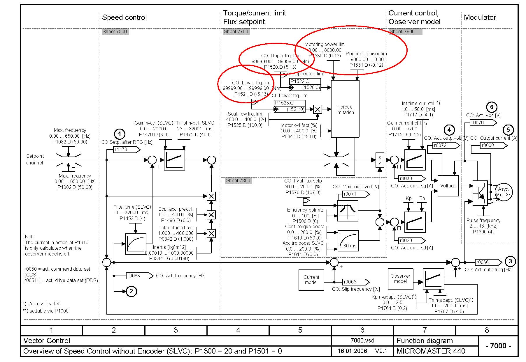 对于SLVC矢量控制,那就更简单了看看参数P1520/P1521=+/-电机额定转矩;P1530/P1531=+/-电机额定功率;P0640=100。这样即可。如果链子断,那也是观察重载时的转矩是多少,把它限制在这个转矩下,也可以出现卡链子就报F0543。