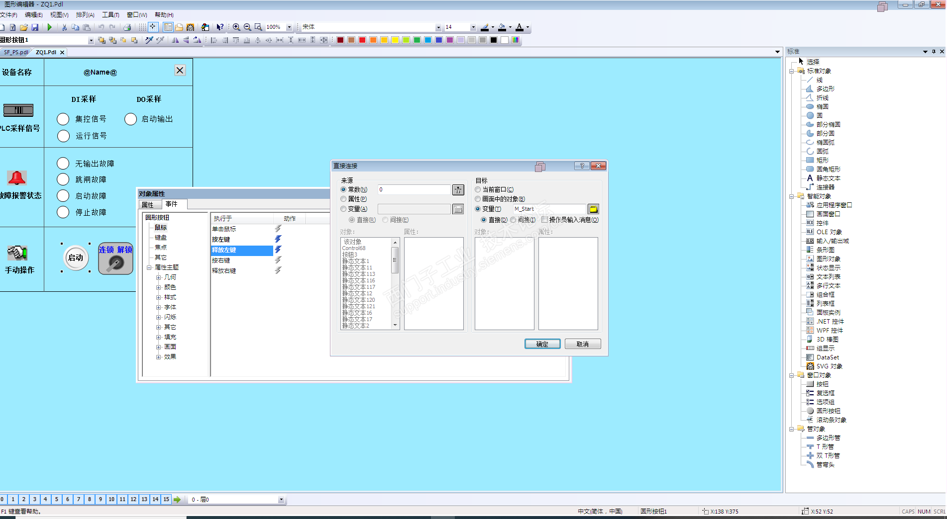 在上位机上点击启动按钮,设备启动,点击停止按钮,设备停止,(启动按钮与停止按钮均在小画面中用直接连接方式进行控制,按左键为1,松开为0);但是设备停止后程序启动按钮一直置位为1,(没有写对启动按钮置位程序),设备自动启动。