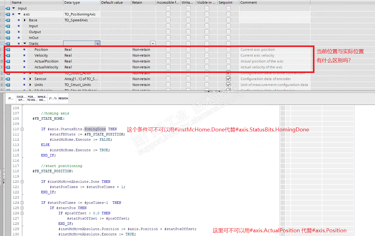 老师,图中INPUT接口中的axis.Position与axis.ActualPosition两者有什么区别吗?对应的程序可以用axis.ActualPosition替换吗?