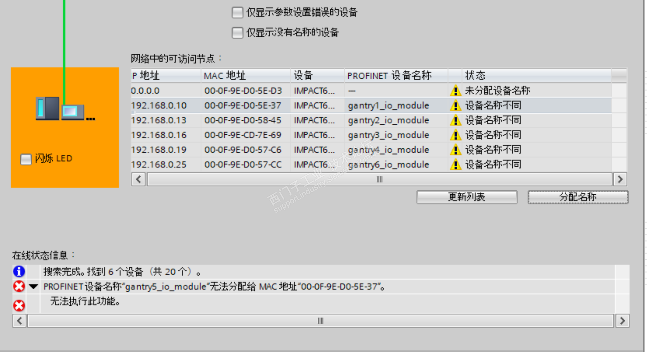 请问有遇到过设备组态无法分配给MAC地址的吗?无法执行此功能?