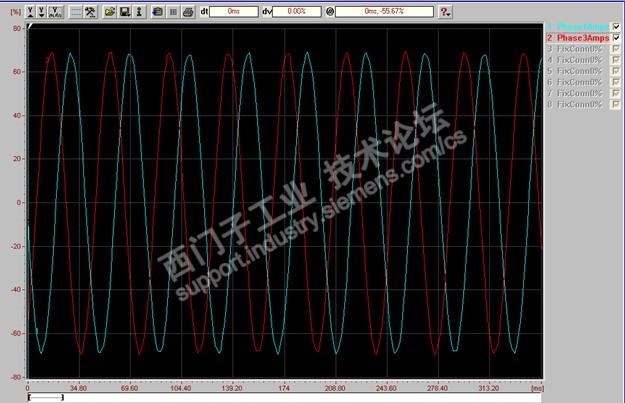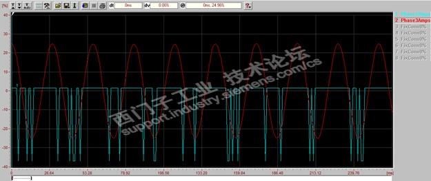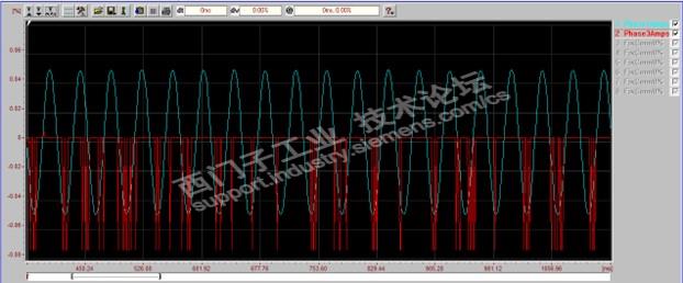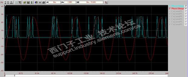1. 寄回检测后发现运行时通过Drive monitor 发现其电流波动范围很大,但是也没报警(72A 装置 带45KW 电机空载),电机运行也平稳。后来trace 电流波形发现U 相电流波形不正常: