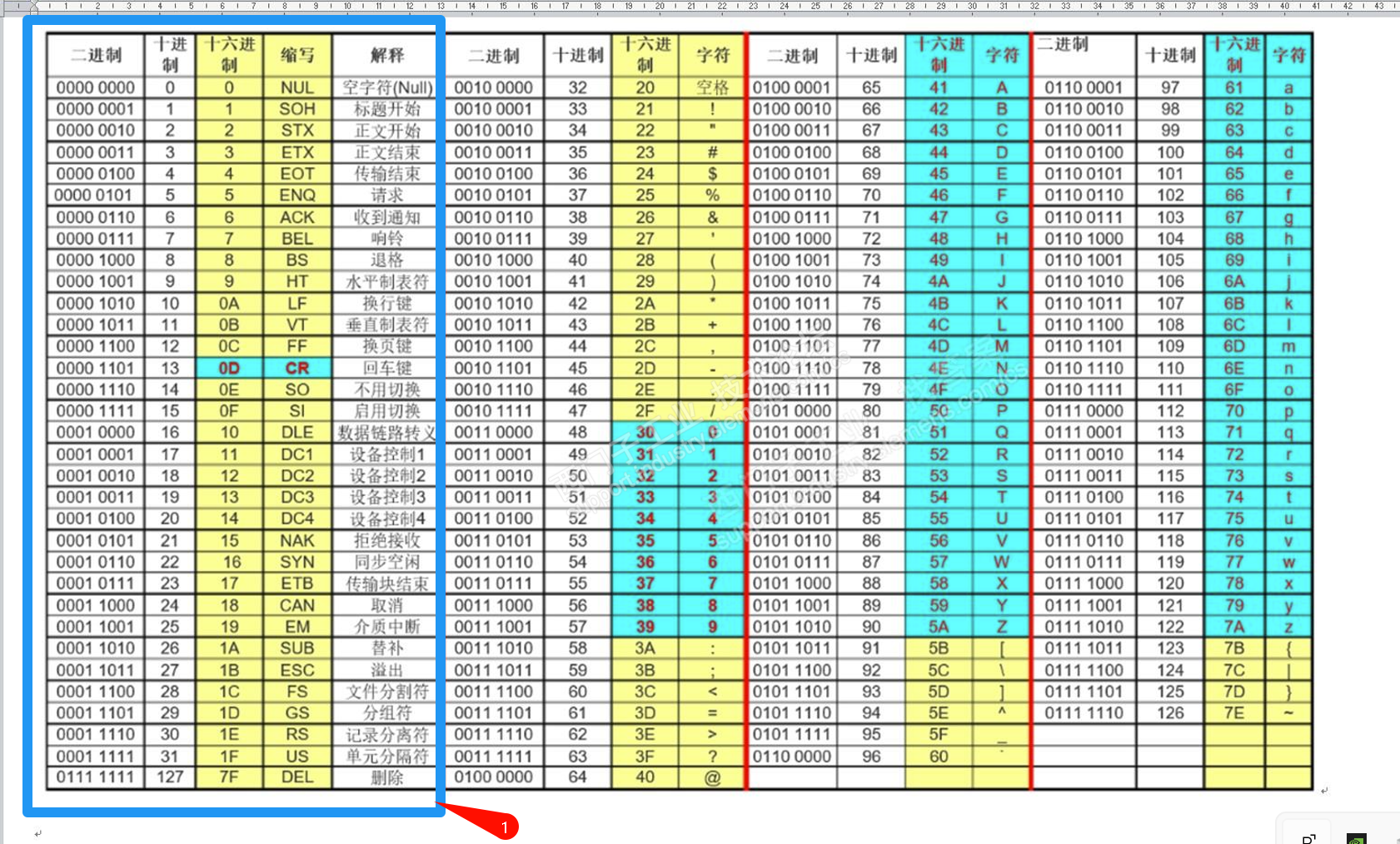 可以划分为两大类,蓝色框内的可称为“控制符号”,余下的可称为“可打印符号”。