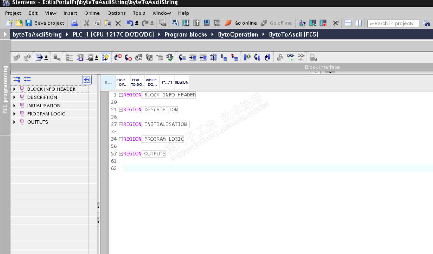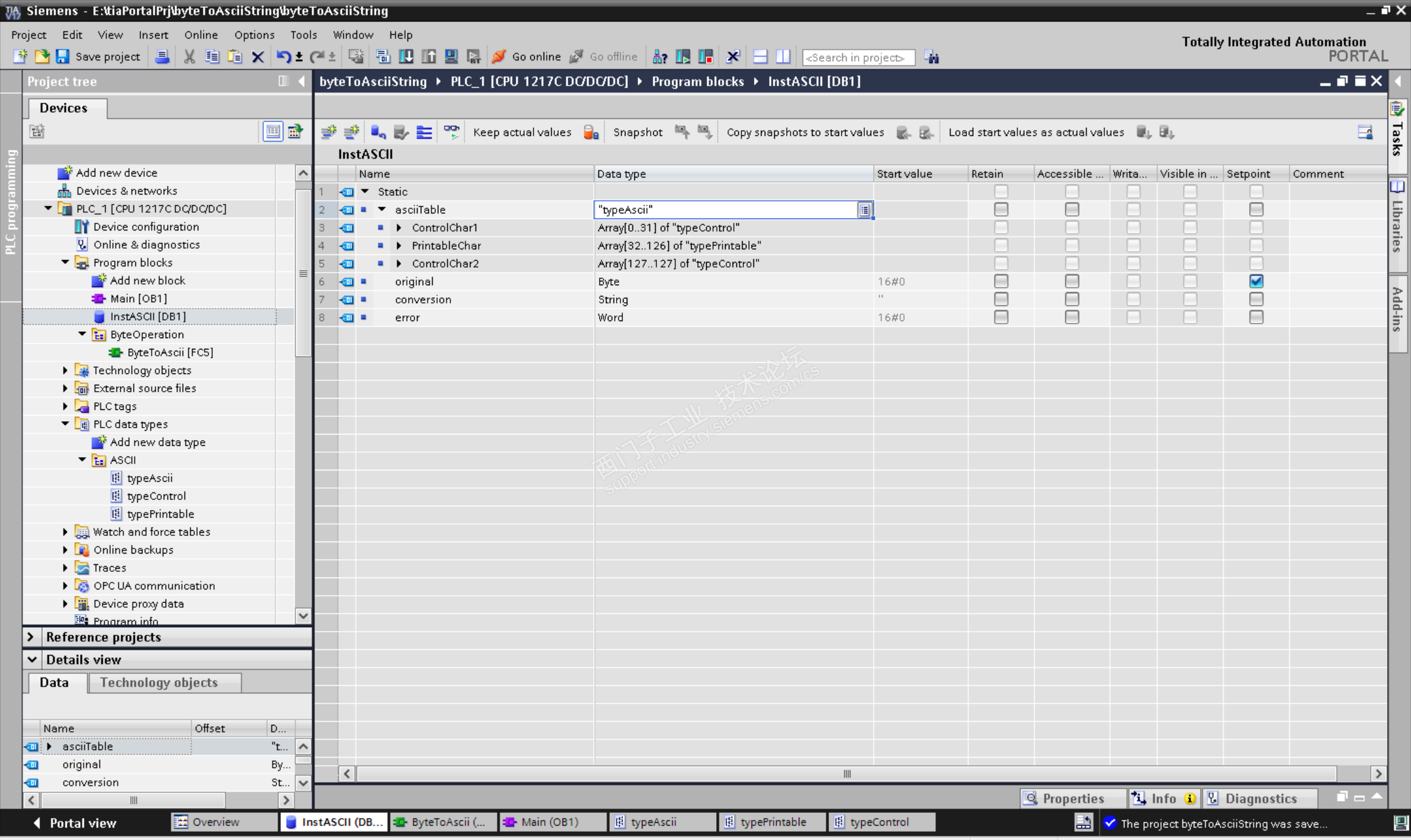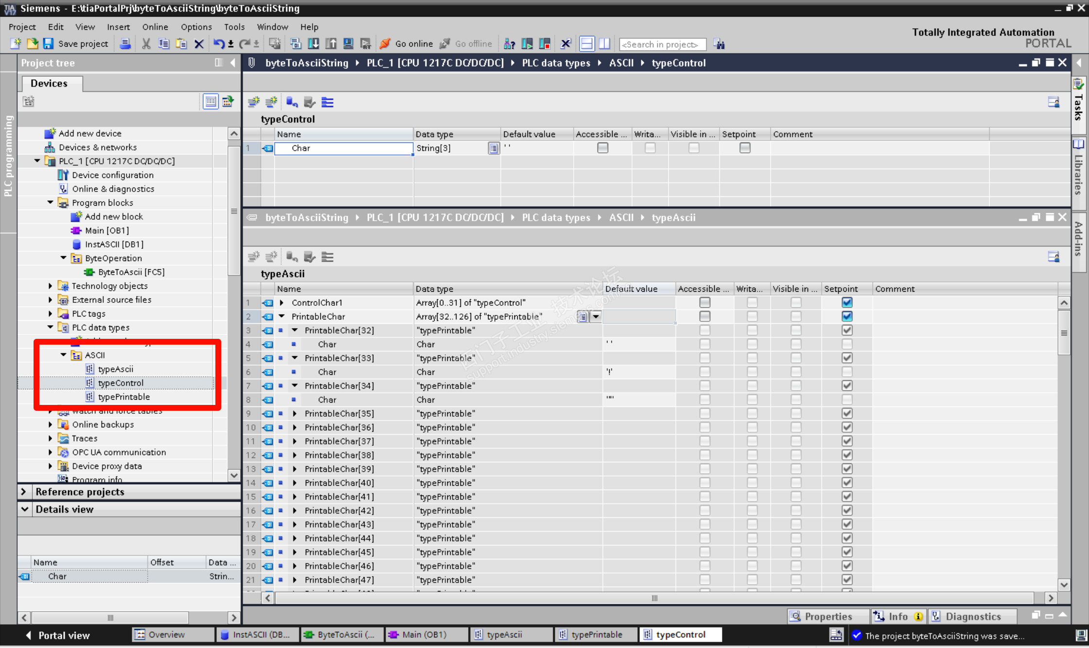 首先,新建对应的PLC 数据类型,typeControl,typePrintable,typeAscii。