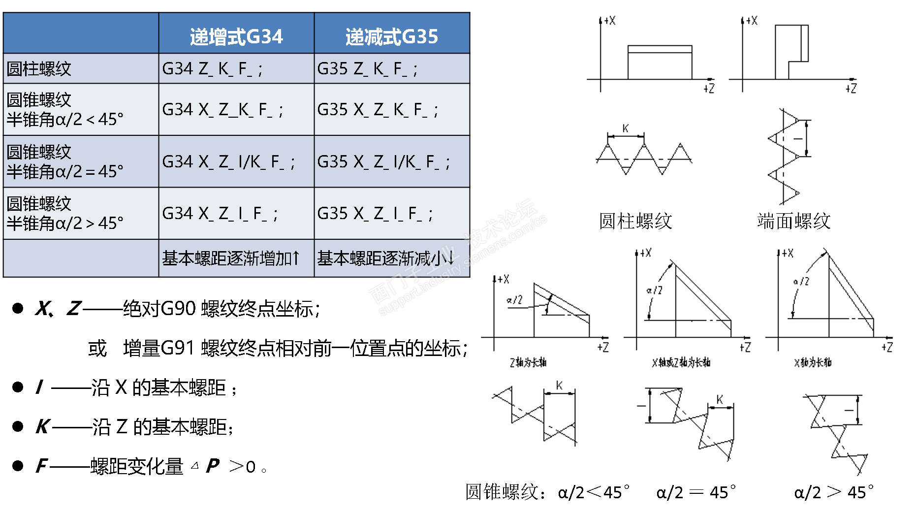 这是西门子系统的变螺距车削指令。基本螺距逐渐增加时,采用G34,基本螺距逐渐减少的,采用G35.