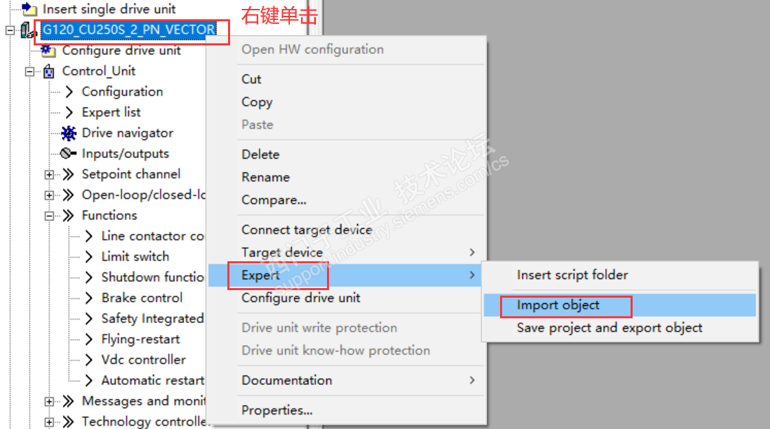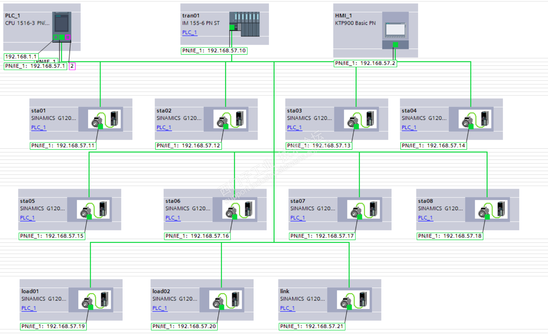 最近调试的一个项目,使用了多套G120变频器,这里使用了PN总线通讯控制,所以每个G120变频器都需要分配一个IP地址。对于网络拓扑来讲,用TIA软件很快就能组态完成,但是参数还是需要一个个下载,调试。尤其是因为是新的项目,有的时候因为机械有调整,刚刚调试好的参数马上又要修改,于是又是10个变频器的工作量。后来我就想着能不能用同一套参数来下载相同的变频器。这里因为考虑到有10个变频器的功率单元都相同,而且机械结构都是一样的,就算每台要做静态识别和动态整定,应该也是接近的整定参数。这部分工作总比每台都一个个调整参数要来的效率高吧。