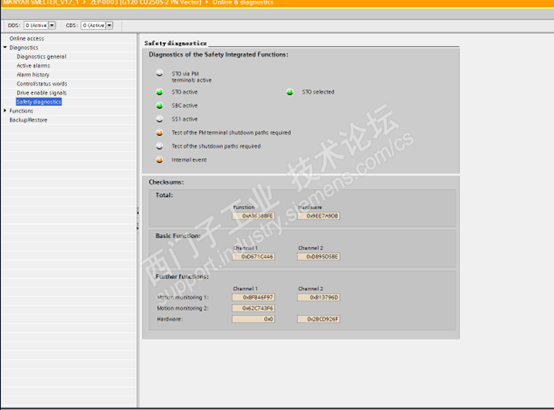 备型号:功率模块PM240-2 ,控制单元CU250S-2 PN Vector,接线如图。组态过程中发生内部故障 ,故障代码1650(1000),因内部故障触发Stop_A,安全组态无法完成,故障无法复位,以下方法均无效:1、外部通过取消STO应答无效。2、通过验收测试无法进行(因存在内部故障触发的STO无法取消)。3、恢复出厂设置拒绝(两种出厂设置恢复均无法恢复,因存在内部故障,安全组态无法恢复出厂设置)。4、反复安全组态无效,有时出现故障代码30600(9999)