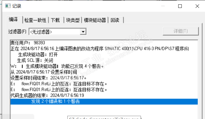如题: 在DB1块中新建了地址为0.0的BOOL型变量a,连接到total块中的管脚RstLi(也是BOOL型数据),连线以后编译就报如题错误,不能下载。