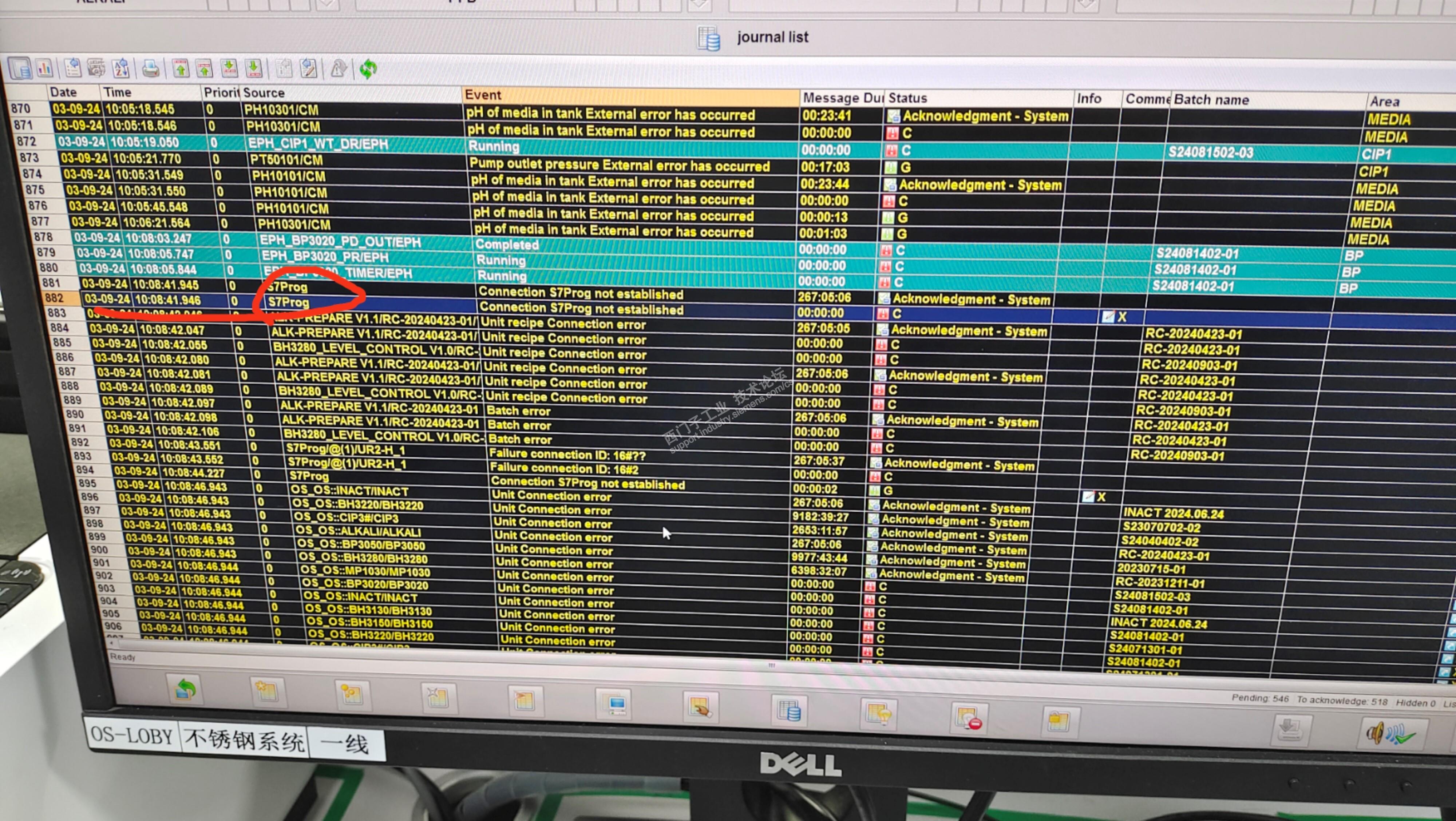 10 点08分报警connection S7Prog not established,导致所有正在正在用的op程序都报错出闪电了都停止了,报警自己恢复的,停止的OP程序人员手动恢复一下继续运行了。请问一下,有遇到过此问题的吗??什么原因导致出现的这个报警,是系统的问题吗?