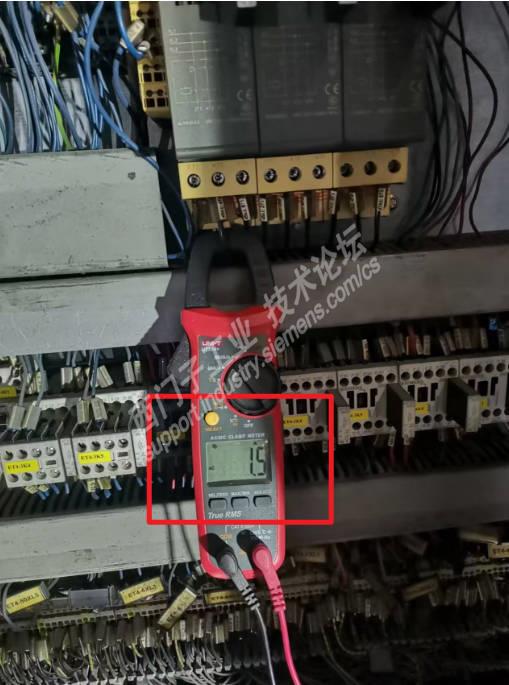 找到问题,解决只是时间问题,找来6004 NSK轴承更换前轴轴承,按拆下方式原路回装风机组件,完成后检查无误,合上回路断路器,重新启动风机用钳表测量电机的额定工作电流,三相均衡,基本在1.5A左右,图示: