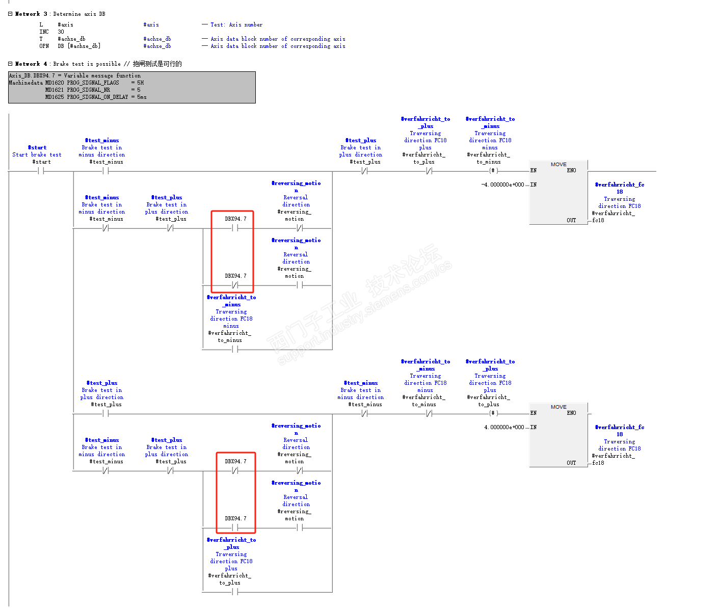 如图所示,程序为加工中心设备的程序,程序正常运行。但不知道这种FB块中的地址如何理解?这个DBX94.7到底是属于哪个DB块,还是说这个是属于变址的DB块?