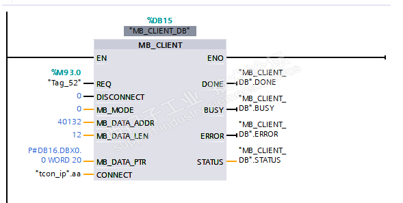 1和2通讯是后来做的,加上后PLC做服务器"MB_SERVER"和上位机进行MODBUSTCP通讯数据读写时总是掉线,上位机打开时有时能通讯成功,但有时根本通讯不了。STATUS端报8380。