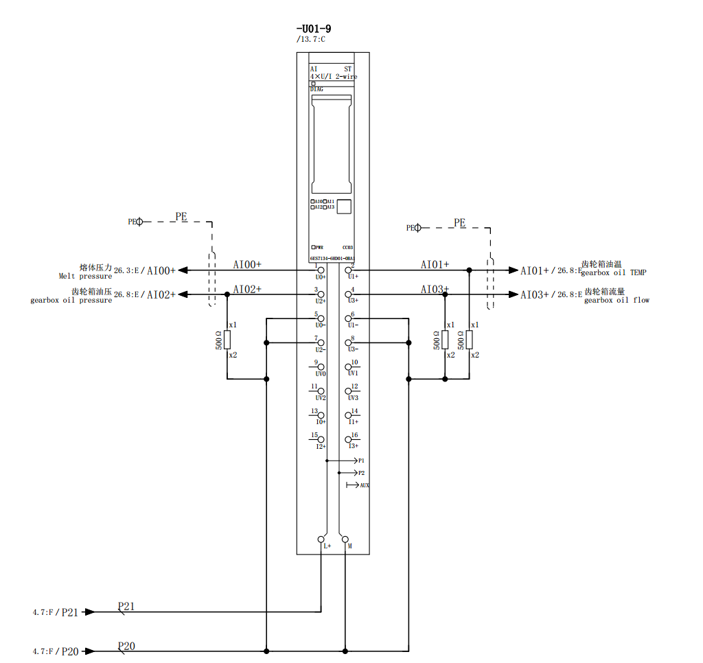 可以接的,你的传感器(1、3)电源 和模块共源,就是白色底板模块的24+、24-,然后其他三根线接I0+ ;I1+ ; I2+。 U端都不用管