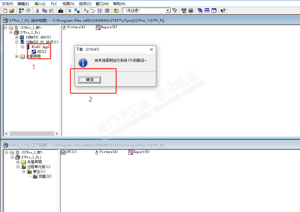 如图我右键点击OS 选择PLC 下载时出现弹窗提示 请问如何解决 谢谢