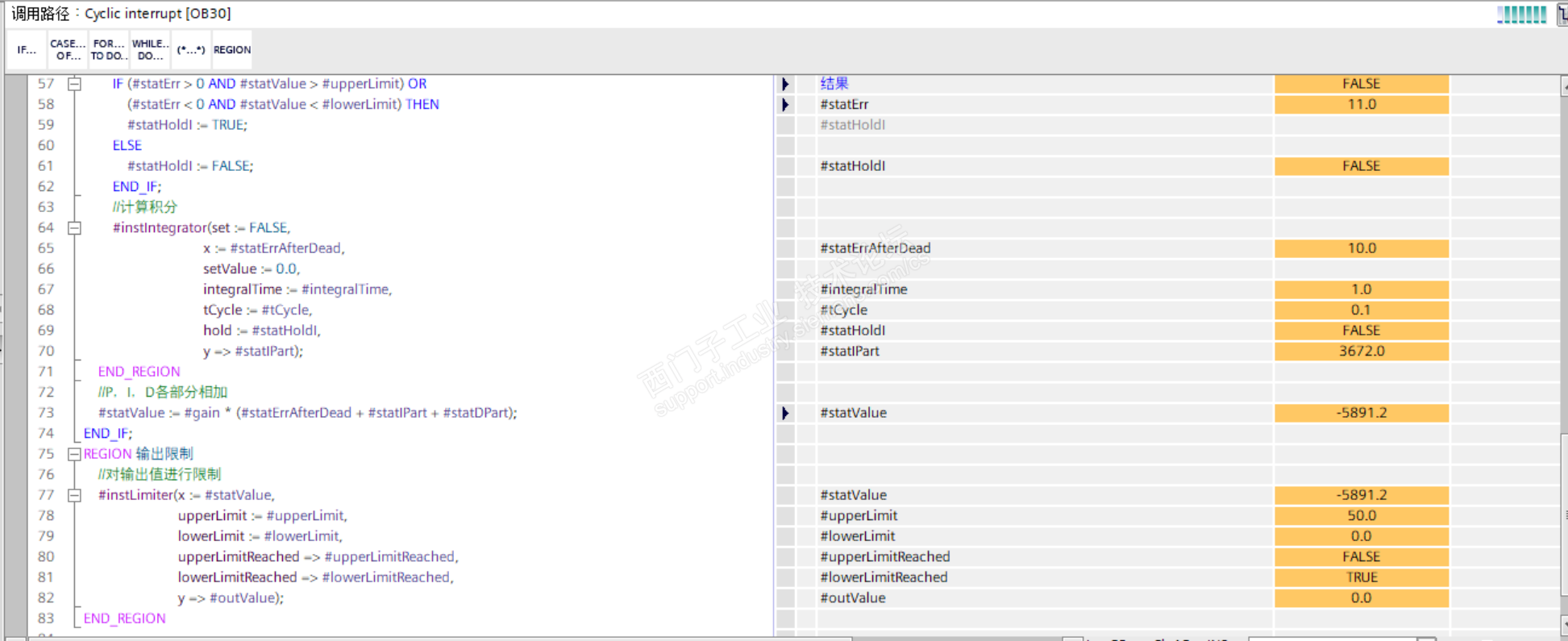 仿真时,实时数据人为的修改,当PID输出值到达上/下限后,#statValue一直在计算累积,且此时修改实时数据模拟PID无法动作,除非手自动切换一下;之前实际应用中我一直使用西门子自带功能块,此次想把TIAPhase3Lib中的PID功能块应用出现这种情况,还请老师指导下?