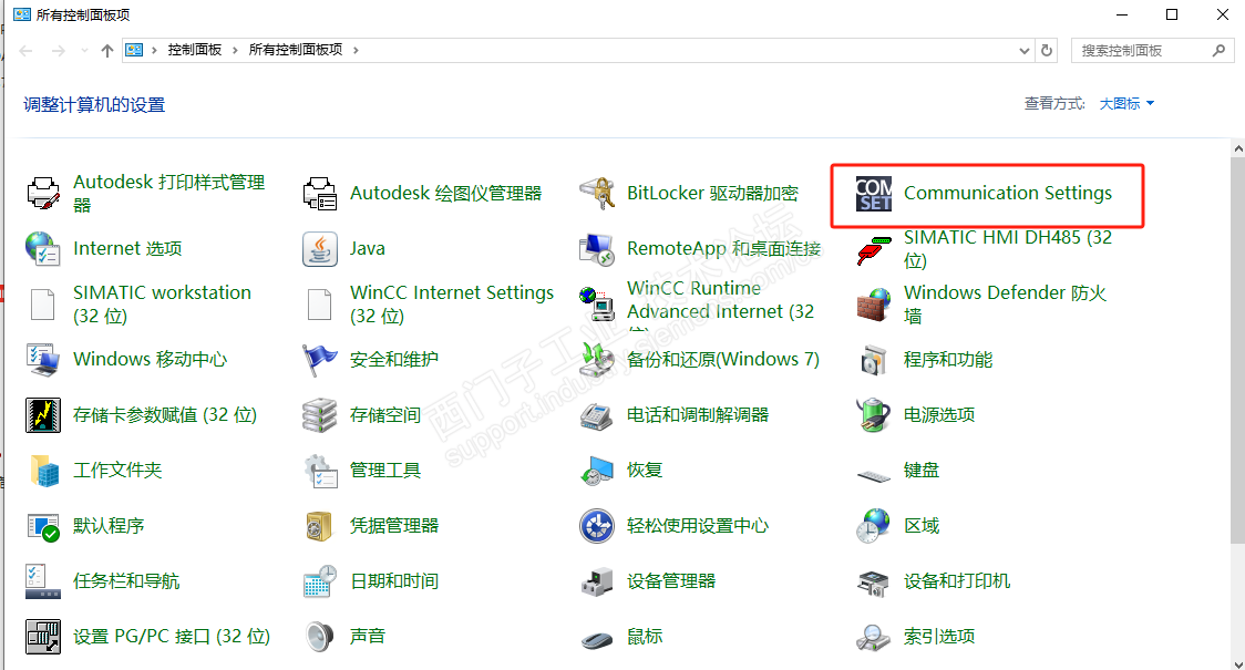 1、打开控制面板,找到“Communication Settings”选项,然后单击打开