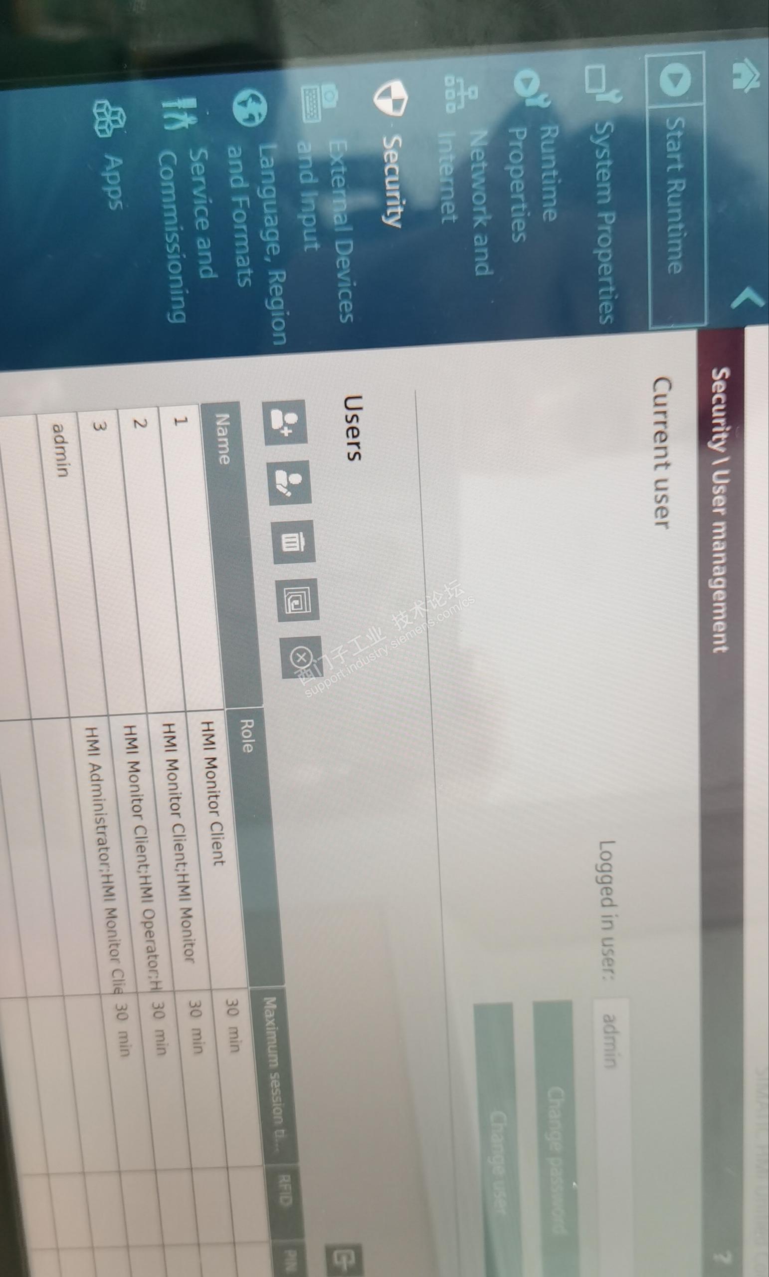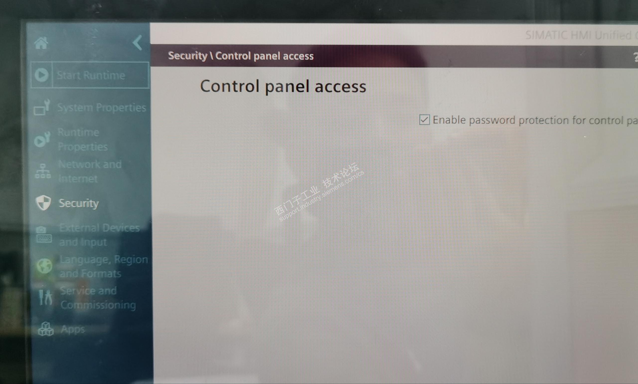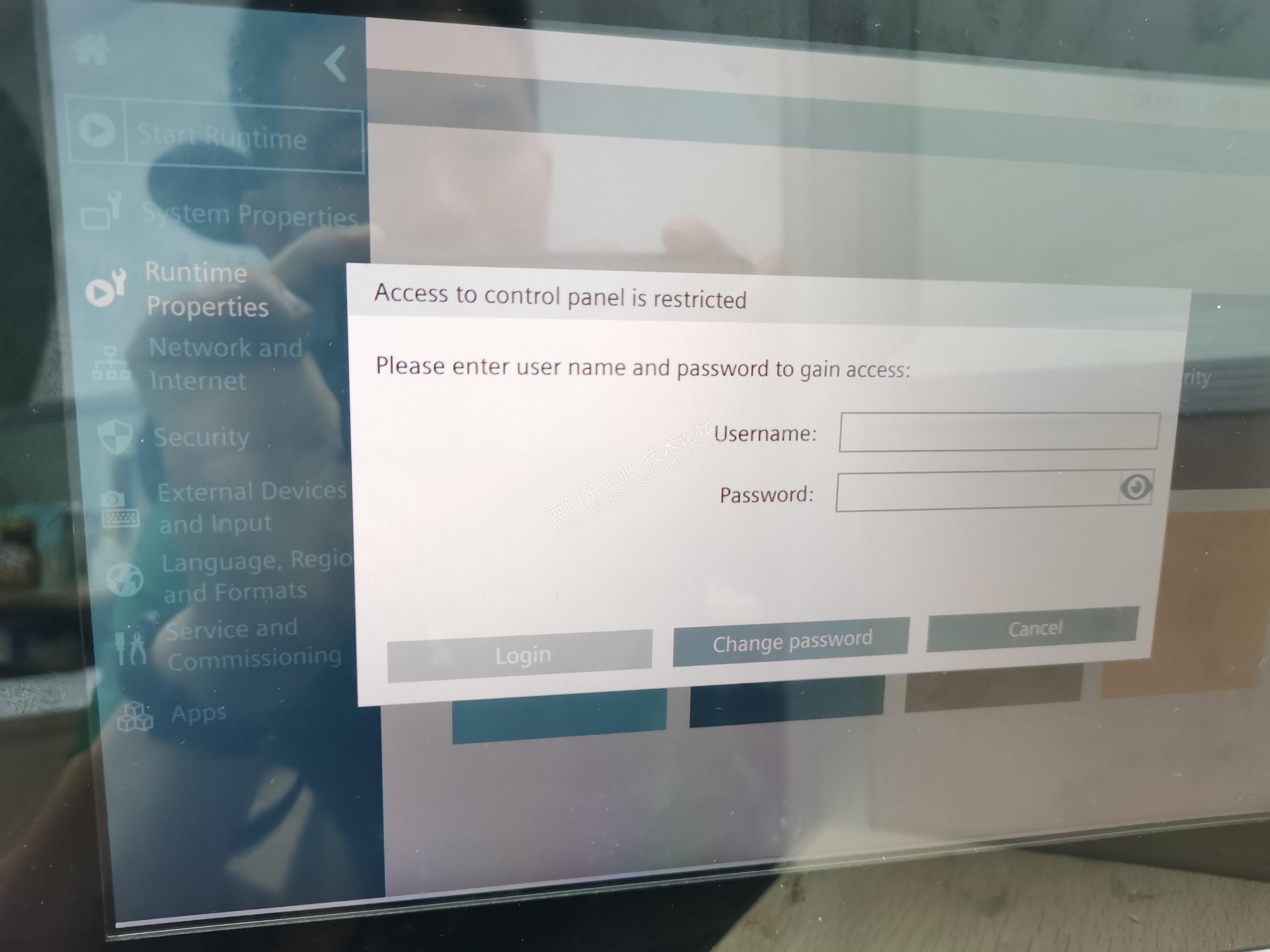 WINCC unified comfort触摸屏,如图一,通过按钮弹出登录界面,登录界面为英语,怎么把他改成我们自己想要的语言,如图2。另外如图3,这个触摸屏底下可以直接点击弹出进入控制面板的按钮,虽然控制面板的操作可以设置成输入密码。但是自带进入控制面板的按钮能不能增加权限,需要登陆后才能点击进入。(不然,就把控制面板做成语言能一起切换的)图4,关于语言,在控制面板中language,region and formats中没有语言设置选项,在language,region and formats中的date and time 里面也没有语言选项,只有时间日期设置。另外在整个控制面板中没有看到其他language的关键字。图5,启用面板密码控制后,如图6.点击控制面板设置选项需要登录,但点击自带的房子按钮,能进入这个控制面板界面,我想的是没登录前,都进不来图7的控制面板界面(不然去掉这个系统自带的,我自己做个按钮增加操作权都可以)。图7用户管理都设置了,屏就在旁边,各位大神能帮帮忙忙看看。
