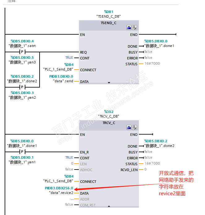 在用网络调试助手对1200PLC 开放式通信时 发送字符串给PLC 但是在PLC接受的缓冲区里,前面两个字符会丢失,