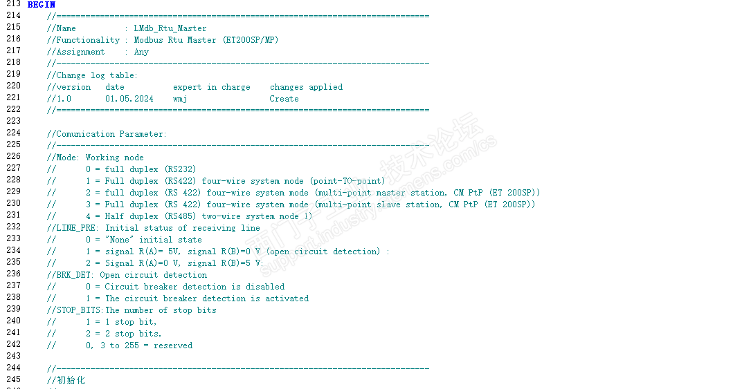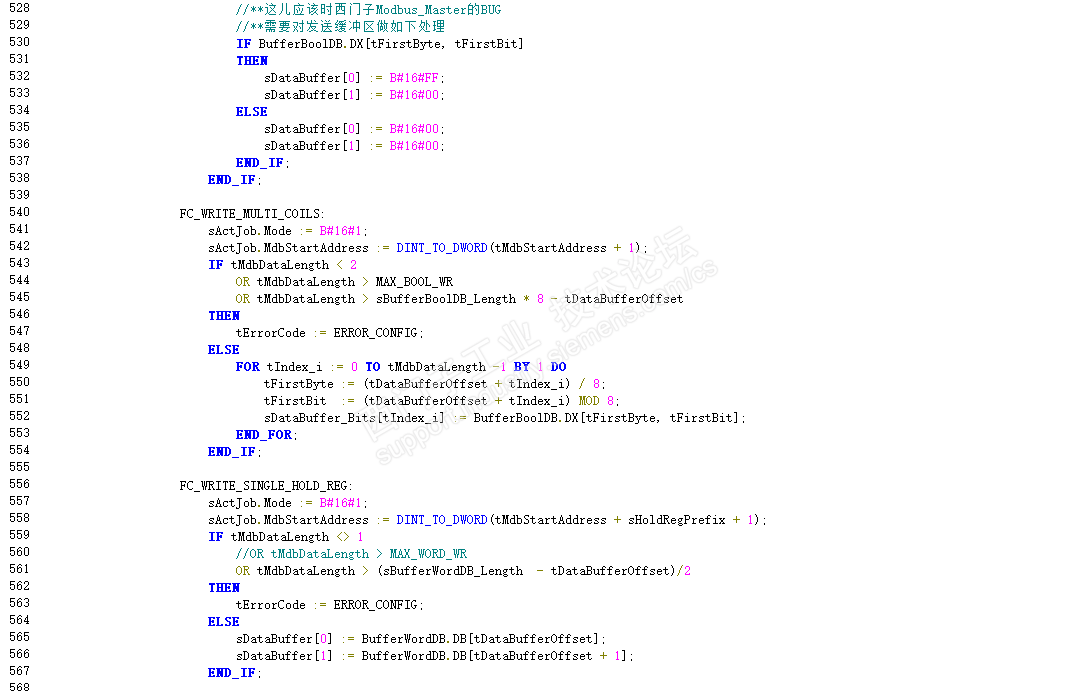 Modbus通讯库采用的是Modbus_rtu_V1_3,其中对于功能码5还有bug,希望西门子可以修复。