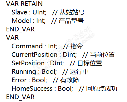 电机类的FB在执行动作时,核心和最终输出就是把相应的Modbus执行参数发送到队列中排队等待执行。而每一条执行报文后又自动触发监测报文的发送。这样做又一个明显的好处,就是电机的动作和Modbus 的通讯完全分离开来,这个循环队列成为两者之间的纽带。在修改电机这部分的程序时,无需考虑和担心Modbus的调用部分,反之亦然。程序的控制逻辑简单明了,清晰易懂。在调试时,监视这个队列的内容就能分析程序的执行情况。