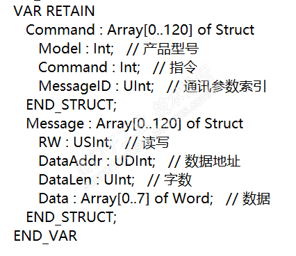 最后,对于不同设备、不同品牌电机,能否采用一种统一的方式来实现Modbus通讯呢?答案是肯定的,就是用数据库。建立一个DB块,存放如图3所示的两个数组就形成了一个简单的关系型数据库,两个数组就是两张表,之间依靠MessageID建立起一对多的关系。在此基础上,所有不同设备和品牌的产品在执行不同动作时的程序结构就可以统一起来,也就是选择数据库中的一条记录。调试程序的时候,只需要看数据库里的数据是否正确,选择的记录是否正确就可以了。哪怕客户将来更换设备或替代产品,也只需要改这个DB块内存放的数据,不会影响到FB中的内容。