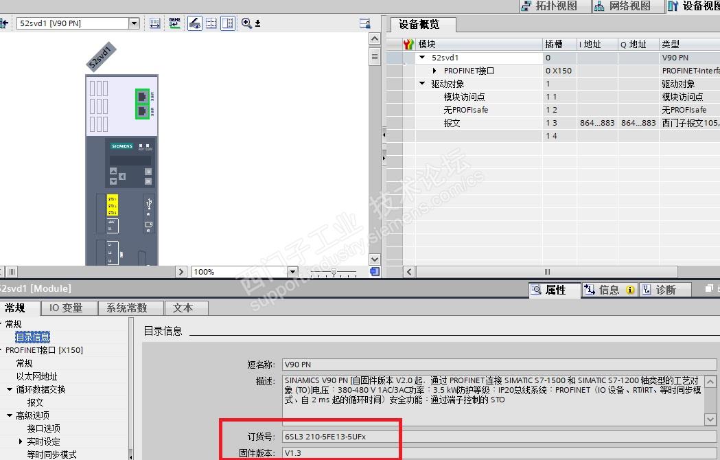 1513PLC,使用V90做工艺对象,使用的是HSP,配置105报文,组态里配置V1.3固件,也把实际的V90驱动器固件版本降到了V1.03.00,但是下载所有组态后仍然通信不上,报加载组态与离线不一致,如图。
